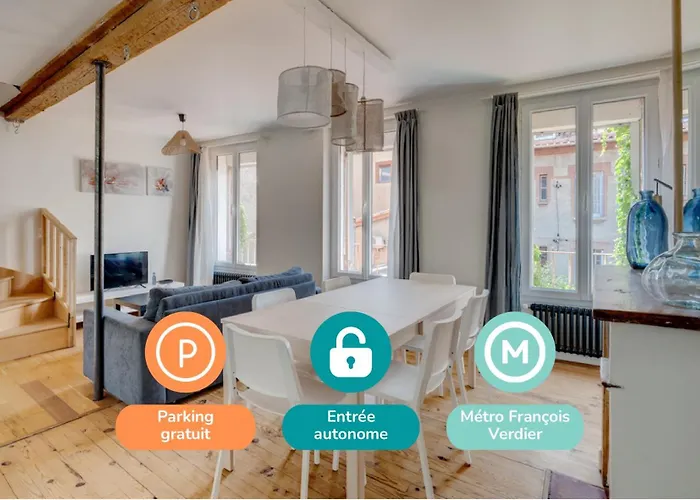 La résidence est niché dans le quartier "Centre de Toulouse" à Toulouse, à côté du Jardin Royal. Le domicile de 75 m² se trouve à environ 5 minutes à pied de la Cathédrale Saint-Étienne, tandis que la station de métro François Verdier est à seulement 200 mètres. Le Jardin japonais de Toulouse est dans une zone de 2 km.